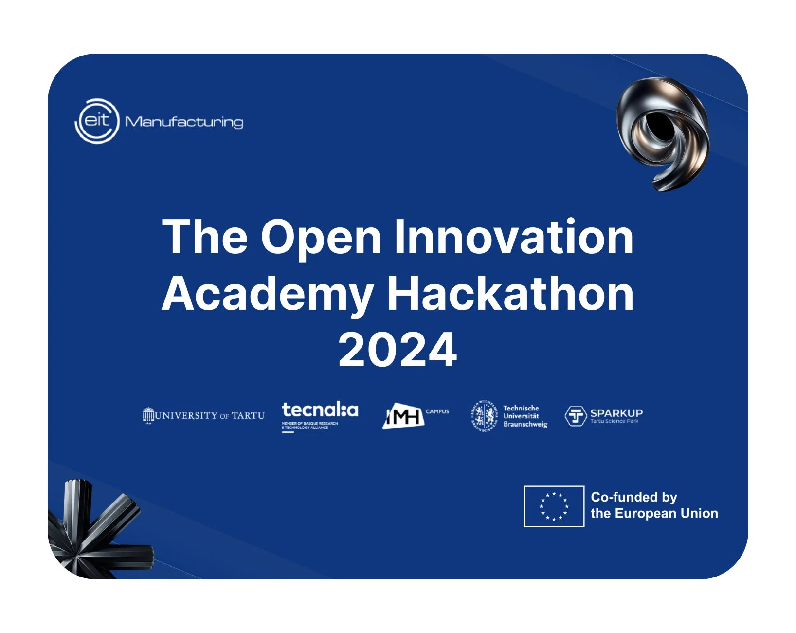 The Open Innovation Academy Hackathon was a learning event where participants solved industry challenges, built essential skills, and used the EIT Manufacturing Academy’s e-learning platform. It focused on entrepreneurship, leadership, teamwork, and innovation.